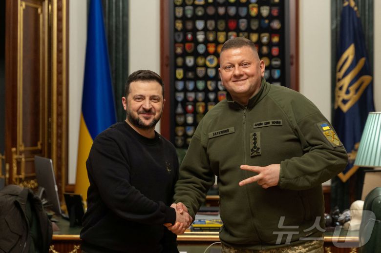(런던=뉴스1) 이지예 객원기자 = 미국과 영국이 볼로디미르 젤렌스키 우크라이나 대통령 교체 가능성을 비밀리에 논의했다는 보도가 러시아에서 나왔다. 유력한 차기 대선 주자인 발레리 잘루즈니 전 우크라이나군 총사령관이 서방의 주목을 받고 있다.