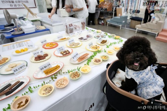 (대구=뉴스1) 공정식 기자 = 29일 대구 북구 엑스코(EXCO)에서 개막한 반려동물 산업 박람회 '2025 케이펫페어 대구'를 반려견이 시식 코너를 지나치지 못하고 있다.  31일까지 열리는 이번 전시에는 사료, 간식, 영양제, 의류, 유모차, 미용·위생 등 다양한 반려동물 용품 관련 업체 139개사가 참여한다. 사진은 기사 내용과 관련없음. 2025.8.29/뉴스1  Copyright (C) 뉴스1. All rights reserved. 무단 전재 및 재배포,  AI학습 이용 금지. /사진=(대구=뉴스1) 공정식 기자