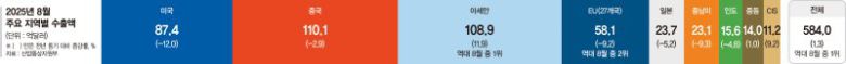수출이 미국 관세 여파로 대미 수출이 줄었음에도 아세안과 신흥시장의 호조세에 힘입어 역대 8월 중 최고 실적을 기록했다. 특정 국가 의존에서 벗어나 수출시장을 다변화하는 흐름이 통계로 확인되며, 향후 관세충격을 흡수할 모멘텀으로 이어질지 주목된다.