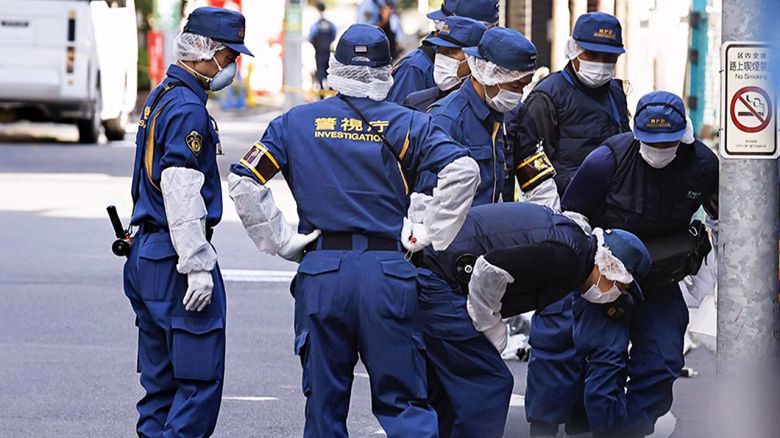 일본 경찰 감식반이 현장을 조사 중입니다.