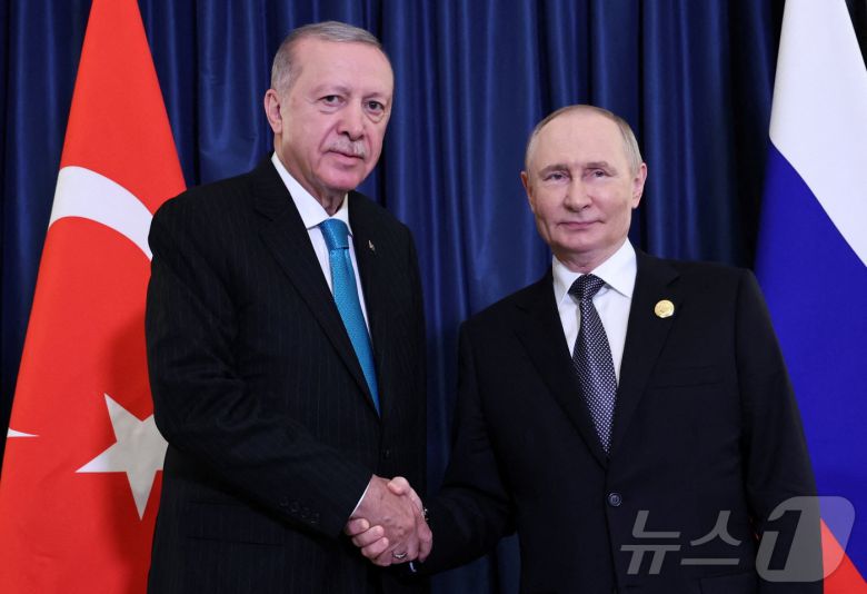 로이터· 타스통신에 따르면 푸틴 대통령과 레제프 타이이프 에르도안 튀르키예 대통령은 이날 중국 톈진에서 열린 상하이협력기구(SCO) 정상회의에서 별도로 만나 회담했다.