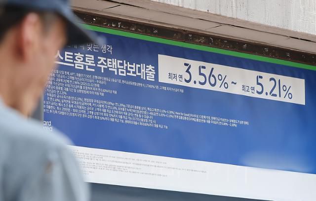 2분기 가계부채(가계신용)가 1,952조8,000억 원으로 역대 최대치를 기록했다고 19일 한국은행이 밝혔다. 사진은 지난 19일 서울 시내 한 시중은행에 붙어 있는 주택담보대출 상품 현수막. 뉴스1