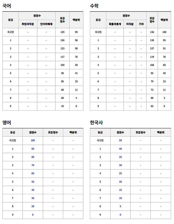 2024년 9월 모의고사 등급컷 (사진=ebsi) |