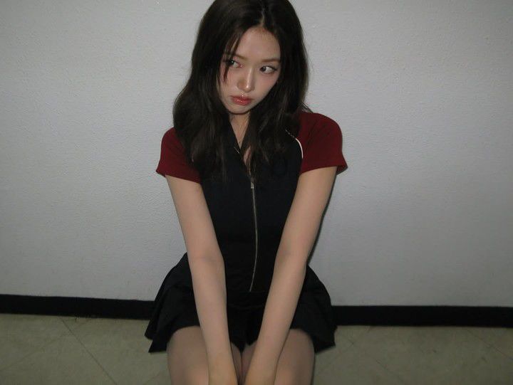 이날 안유진은 블랙과 레드 컬러가 배색된 집업 상의와 블랙 플리츠 스커트를 매치해 캐주얼하면서도 스포티한 무드를 연출했다.