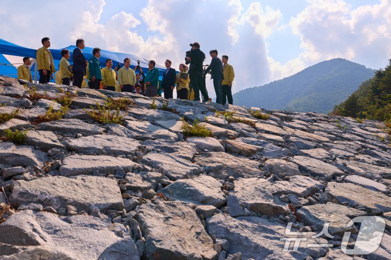 이재명 대통령이 지난 30일 강원 강릉시 성산면 오봉저수지를 방문해 가뭄 피해 상황 등을 점검하고 있다. (이재명 대통령 SNS. 재판매 및 DB 금지) 2025.8.31/뉴스1 ⓒ News1 허경 기자 |