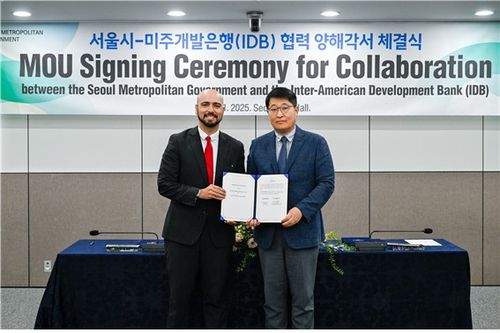 (서울=연합뉴스) 정수연 기자 = 서울시는 지난 1일 미주개발은행(IDB)과 '공적개발원조(ODA) 사업의 중남미 진출 활성화'를 위한 협력 양해각서(MOU)를 체결했다고 2일 밝혔다.