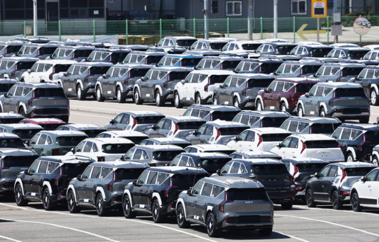 수출 대기 중인 전기차. 연합뉴스 자료사진 |