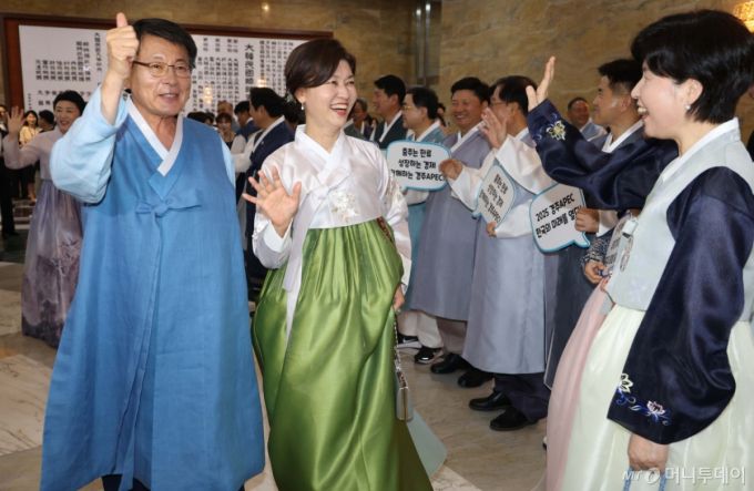 민주당 의원들이 대부분 우 의장의 제안에 화답했다. 형형색색 한복으로 수 놓인 본회의장 앞 로텐더홀은 패션쇼장을 방불케 했다. 모경종·전용기 민주당 의원은 검은색 도포와 갓을 쓰고 본회의에 참석해 시선을 끌었다. 현장에서는 "(넷플릭스 오리지널 시리즈) '케이팝 데몬 헌터스'(케데헌)의 인기 캐릭터 '사자보이즈' 같았다"는 반응이 나왔다.