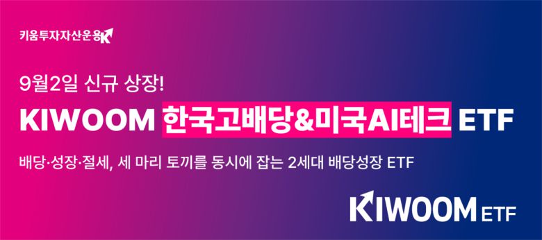 [헤럴드경제=신동윤 기자] 키움투자자산운용은 국내 고배당주와 미국 인공지능(AI) 테크주를 결합한 ‘KIWOOM 한국고배당&미국AI테크 상장지수펀드(ETF)’를 유가증권시장에 신규 상장한다고 2일 밝혔다.