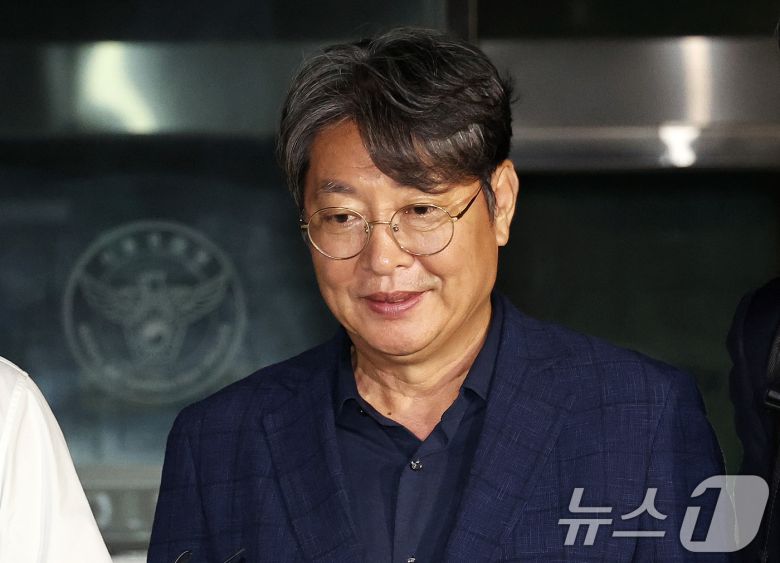 주식 차명거래 의혹이 제기된 이춘석 무소속 의원이 15일 새벽 서울 마포구 서울경찰청 금융범죄수사대에서 조사를 마친 뒤 나서고 있다. 2025.8.15/뉴스1 ⓒ News1 구윤성 기자 |