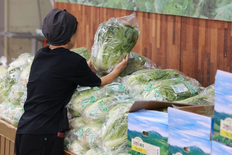 서울 서초구 하나로마트 양재점을 찾은 시민이 배추를 살피는 모습 [연합] |