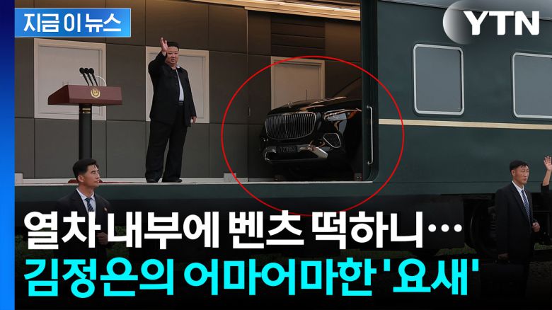 문 뒤에 메르세데스-벤츠의 최고급 신형 스포츠유틸리티차(SUV) 한 대가 놓여 있어 열차 내부 공간의 규모를 짐작하게 했습니다.