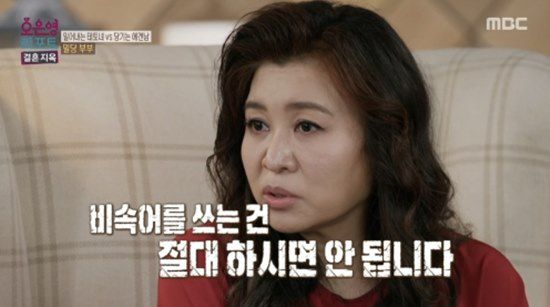 오은영 박사는 아내의 욕설에 대해 "비속어를 털털하다고 표현하는 건 절대 동의하지 않는다. 너무 거칠고, 어떠한 이유에서도 멈춰야 한다"며 "애기가 크면 듣는다. 이런 식의 소통으로는 원하는 것을 전달할 수 없다"고 지적했다.