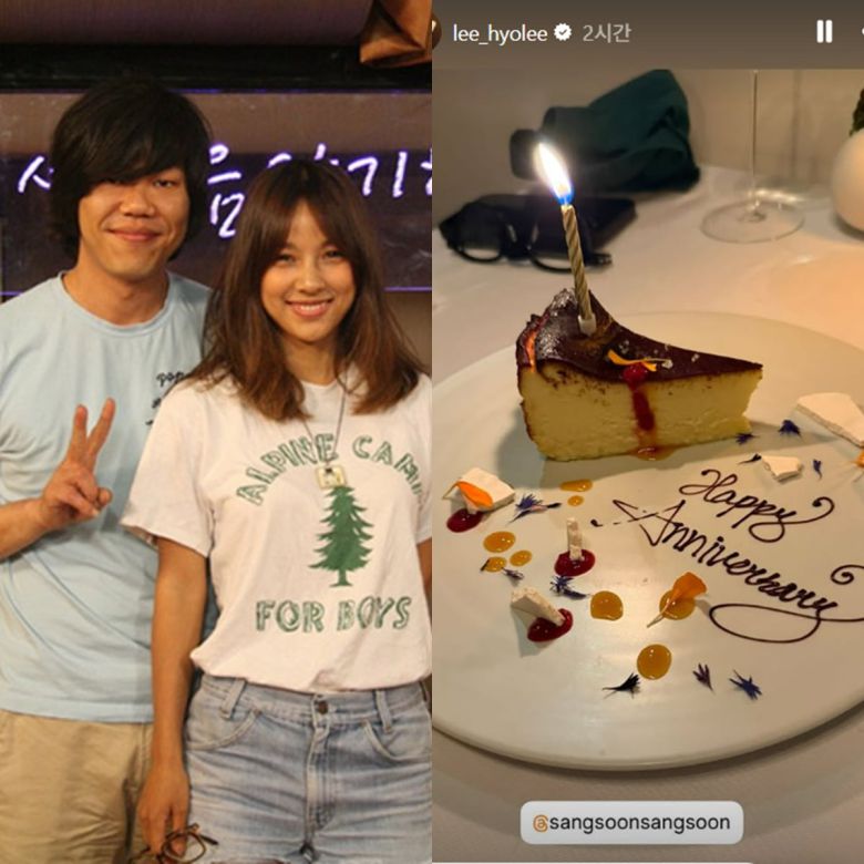 이효리는 2일 자신의 SNS에 남편 이상순을 태그하며 사진을 게재했다. 공개된 사진은 작은 조각 케이크 위애 결혼기념일을 축하하는 문구가 적혀 있어 눈길을 끌었다.