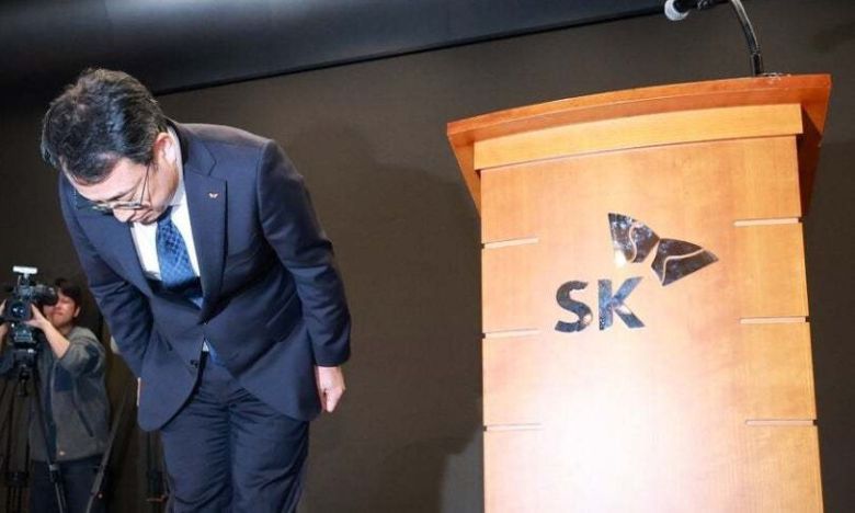 유영상 에스케이(SK)텔레콤 대표이사가 지난 4월25일 서울 중구 사옥에서 에스케이텔레콤 이용자 유심(USIM) 정보가 해커 공격으로 유출된 것과 관련해 고개 숙여 사과하고 있다. 연합뉴스 |