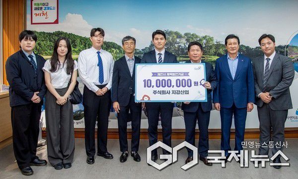 (제천=국제뉴스) 김상민 기자 = ㈜지강산업(대표 나현수)이 2일 제천시청 시장실에서 김창규 시장, 안성국 시체육회장 및 관계자가 참석한 가운데 체육발전기금 1,000만 원을 기탁했다.