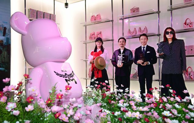 2일 서울 강남구 압구정 MCM 하우스에서 열린 '베어브릭 인 MCM 원더월드' 전시에서 작가들이 베이브릭 작품을 들고 포즈를 취하고 있다. 왼쪽부터 노부키 히즈메, 켄 야시키, 이사오 우에하라, 타츠히코 류 아카시. ?오는 3일부터 청담동에 위치한 MCM HAUS에서 열리는 이번 전시는 2021년부터 베어브릭과 네 차례 협업을 통해 패션과 아이코닉한 팝 컬처를 결합한 새로운 영역을 개척해 온 MCM의 차세대 럭셔리와 경험적 디자인을 향한 문화 혁신의 여정을 보여준다. MCM 제공.