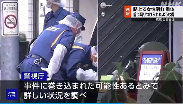 앞서 전날 오후 1시35분께 "여성이 피를 흘리며 쓰러져 있다"는 신고를 받아 출동한 경찰은 세타가야구 주택가에서 목 부위에 자상을 입은 채 쓰러져 있는 B씨를 발견했다.