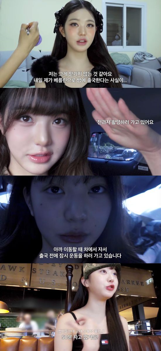 뮤직비디오 촬영을 마친 뒤에는 웹 예능 '전과자' 병영 체험을 앞두고 있던 것. 이후에는 대형 페스티벌인 롤라팔루자 베를린 공연을 위해 출국도 해야 했다. 장원영은 "내일 제가 베를린으로 출국한다는 사실이 믿기지 않는다. 새벽 1시 비행기다. 캐리어도 쌀 시간이 없었다"고 토로했다.