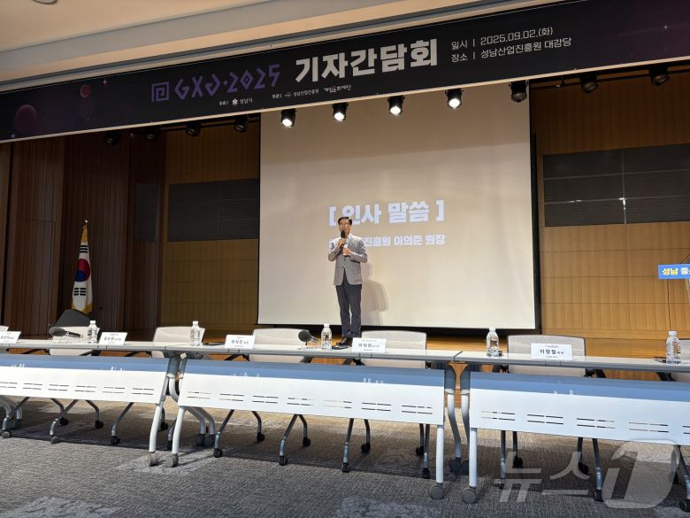 이의준 성남산업진흥원장이 2일 경기도 성남시 성남산업진흥원에서 열린 'GXG 2025 기자간담회'에서 발언하고 있다.2025.9.2/뉴스1 ⓒ News1 김민재 기자 |