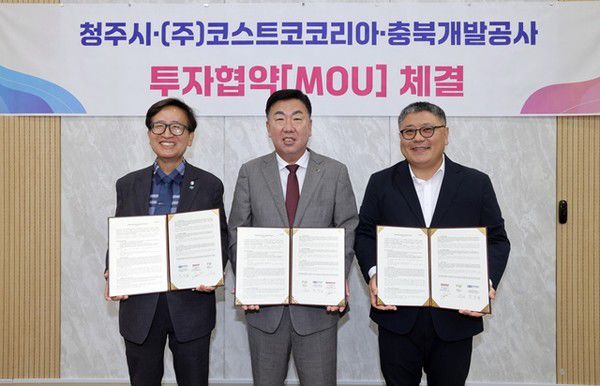 청주시는 2일 임시청사 직지실에서 ㈜코스트코코리아, 충북개발공사와 프리미엄 유통시설 입점을 위한 3자 간 투자협약(MOU)을 체결했다고 밝혔다.