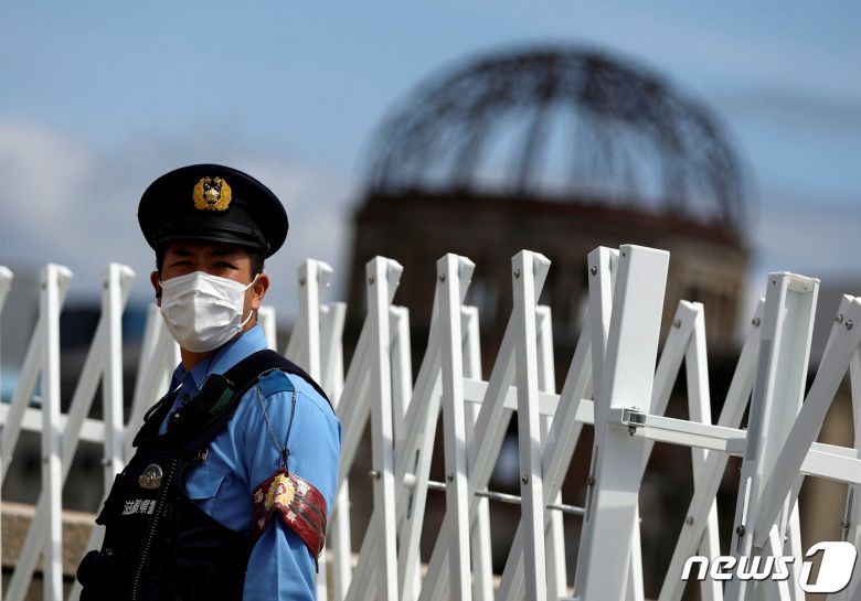 일본 히로시마에서 경찰 공무원이 경비를 서고 있는 모습. 2023.05.20. (사진은 기사 내용과 무관함) / ⓒ 로이터=뉴스1 ⓒ News1 정윤영 기자 |