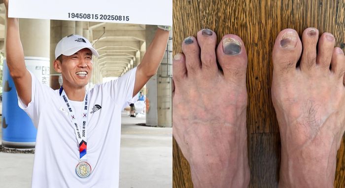 그는 SNS를 통해 81.5km 완주를 기념하는 사진과 함께 발톱이 들리고 멍든 충격적인 발 상태를 드러냈다. 션은 "영광의 트로피. 왼쪽 엄지발톱 포함 4개의 발톱이 들리고, 오른쪽 엄지발톱과 두 번째 발톱이 빠질 준비를 하고 있다. 아직 4개는 괜찮다^^"라고 담담하게 전했다. 그는 이어 "올해 광복 80주년 광복절에 최선을 다해 81.5km의 감사 편지를 써서 전할 수 있어 그저 감사하다. 누군가는 해야 할 일이기에"라며 완주에 담긴 특별한 의미를 밝혔다.
