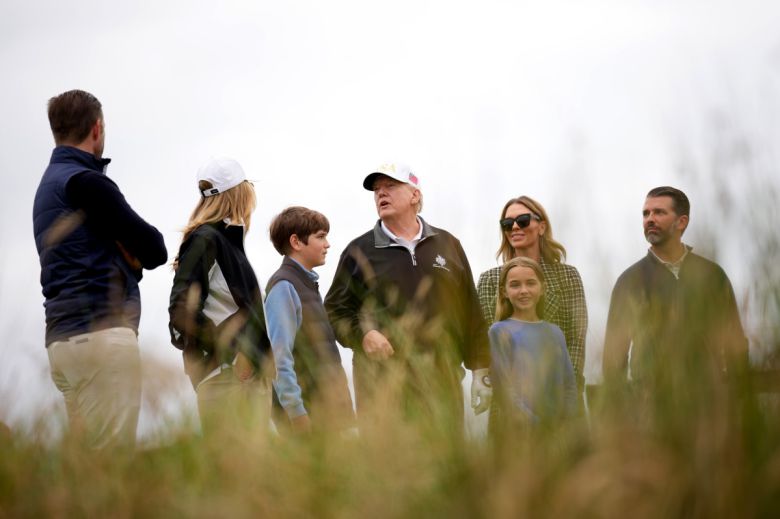 트럼프 인터내셔널 골프 링크스의 새로운 18홀 골프 코스에 있는 도널드 트럼프 미국 대통령과 가족들