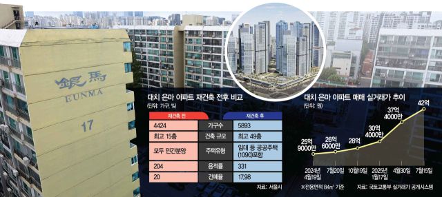 은마의 초고층 재건축이 가능해지면서 추가 시세 상승이 이어질 수 있다는 전망이 나온다. 전용면적 84㎡의 경우 지난해 10월 말 매매 시세는 28억 원이었지만 6·27 대출 규제 시행 이후인 지난달 15일 42억 원에 거래되며 14억 원이나 뛰었다. 이날 정비계획 변경 소식에 대치동 은마아파트 집주인들은 매매로 내놓았던 물건을 거둬들이는 분위기였다. 단지 인근 부동산 중개업소 입구에는 전월세 매물이 대부분이고 매매 물건은 거의 없었다. 단지 주변에는 ‘재건축 사업의 이해’를 주제로 열리는 정비사업 아카데미 등의 현수막이 걸려 주민들의 재건축에 대한 뜨거운 관심과 열기를 나타냈다.