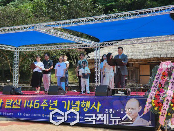 (홍성=국제뉴스) 박의규 기자 = 홍성군에 따르면 지난 29일 만해 한용운 선생의 탄신일을 맞이하여 그의 숭고한 삶과 정신을 기리는 '만해 한용운 선사 탄신 146주년 기념행사'가 결성면 성곡리 소재 한용운선생 생가지에서 거행되었다.