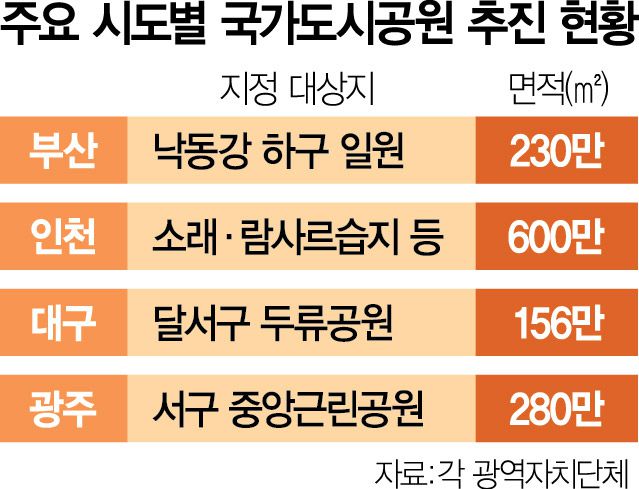 2일 각 시도에 따르면 부산·인천·대구·광주·울산 등은 이르면 내년 하반기로 예상되는 정부의 첫 국가도시공원 지정을 앞두고 사전 작업에 돌입했다. 국가도시공원은 자연경관이나 역사, 문화유산을 국가 차원에서 보전 및 활용하는 대규모 공원으로, 2016년 도입됐다. 국가도시공원으로 지정되는 지역은 관광 유치와 투자, 정주 여건 개선 등에서 긍정적인 효과가 예상되지만, 까다로운 요건 탓에 아직 한 곳도 지정되지 못했다.
