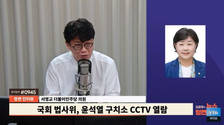 ☆김준우: 오늘 국회에서 가장 뜨거웠던 상임위는 국회 법사위였는데요. 국민의힘 5선 나경원 의원을 국민의힘에서 야당 간사로 내정한 것을 두고 여야가 극렬하게 충돌했습니다. 그리고 또 법사위에서는 윤석열 전 대통령 체포 영장 집행 당시 CCTV 영상 공개 여부가 논점이 되고 있고요. 또 검찰 개혁 관련해서 여당과 대통령실의 엇박자가 어떻게 정리될지 관심 사안이라고 할 수 있습니다. 그래서 오늘은요. 법사위 소속 더불어민주당 서영교 의원 전화로 연결합니다. 의원님 나와 계시죠?