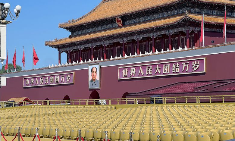 지난 1일 중국 베이징 천안문 광장에 수 많은 좌석이 준비되어 있다.뉴스1 |