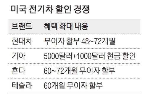 미국 전기차 판매 점유율이 50%에 달하는 테슬라도 올 8월 들어 할인폭을 넓혔다. 모델3와 모델Y 등 주력 차종은 60개월 무이자 할부, 리스 구매 시 3000달러의 현금 할인을 제공한다.