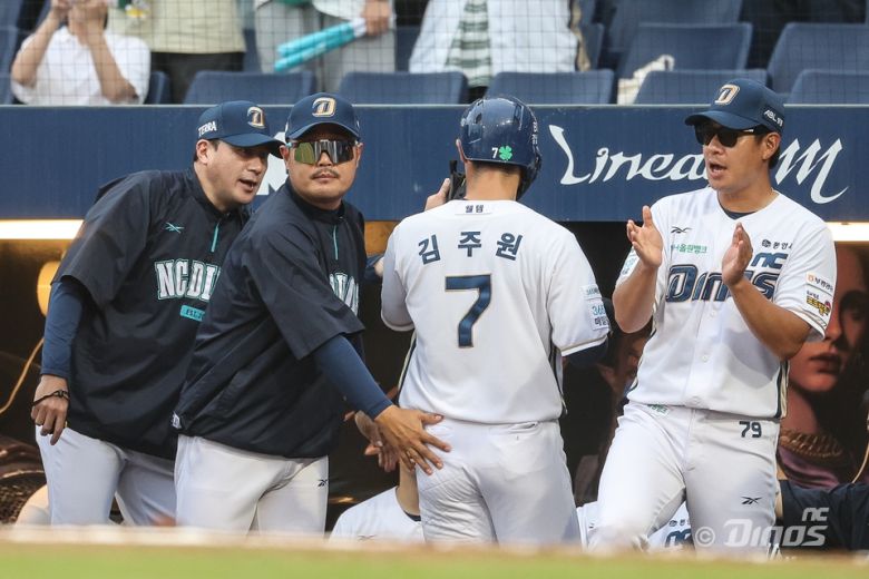 NC는 2일 수원 KT위즈파크에서 열린 2025 KBO리그 KT와의 원정경기에서 1회 시작하자마자 넉 점을 내줬지만, 9점을 뽑아낸 타선의 힘을 앞세워 9-4로 이겼다. 순위 경쟁 팀간의 맞대결에서 기분좋은 역전승을 거둔 NC는 57승6무58패로 순위는 그대로 7위에 머물렀지만, 6위 KT(62승4무61패)와의 승차를 1경기로 줄였다. 5위 롯데(62승6무60패)와는 1.5경기차. 충분히 해볼만한 격차다. 3위 SSG(62승4무58패), 4위 삼성(63승2무60패)와도 2.5경기, 2경기 차라 내심 3위까지 치고갈 수 있는 상황이다.