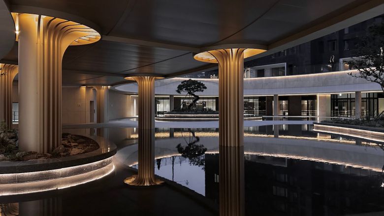 아파트 입구 커다란 문주(門柱) 사이로 ‘입주를 환영합니다’라고 적힌 현수막도 보였다. 지하 1층으로 내려가자 이색적인 공간이 펼쳐졌다. 입주민 커뮤니티시설인 ‘써밋 라운지’ 한복판에 조성한 선큰 정원이다. 일명 미러폰드라고 불리는 이 정원은 지붕을 통해 햇빛이 들어오고 곡선형 바닥을 따라 물길이 흐른다. 소나무와 배롱나무로 꾸며진 작은 섬 형태의 조경 공간이 정원 가장자리를 따라 이어진다. 입주민 윤모(54)씨는 “단지 밖에 공원이 있고 내부에 정원도 마련해 자연 속에서 사는 기분을 느낄 수 있다”며 만족감을 드러냈다.