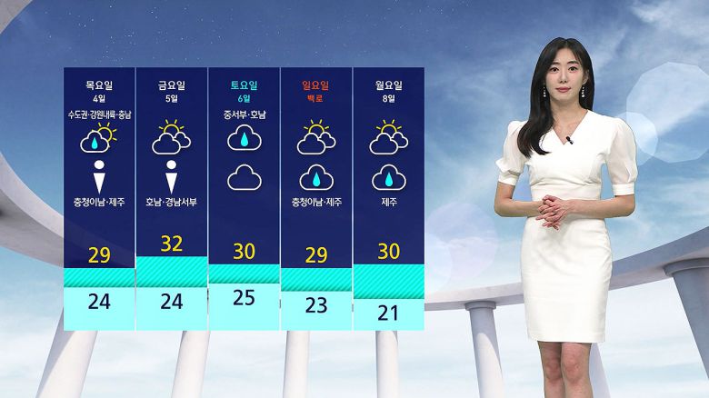 한편 충청 이남 지역에는 소나기 예보가 나와 있습니다.