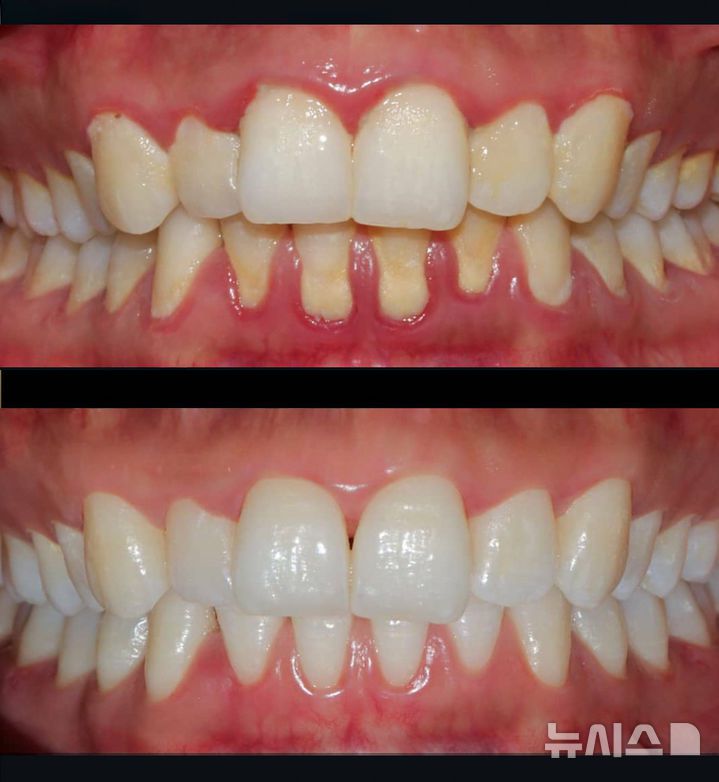 [서울=뉴시스] (위아래순) 치주질환 치료 전후 사진. (사진= 고대안산병원 제공) |