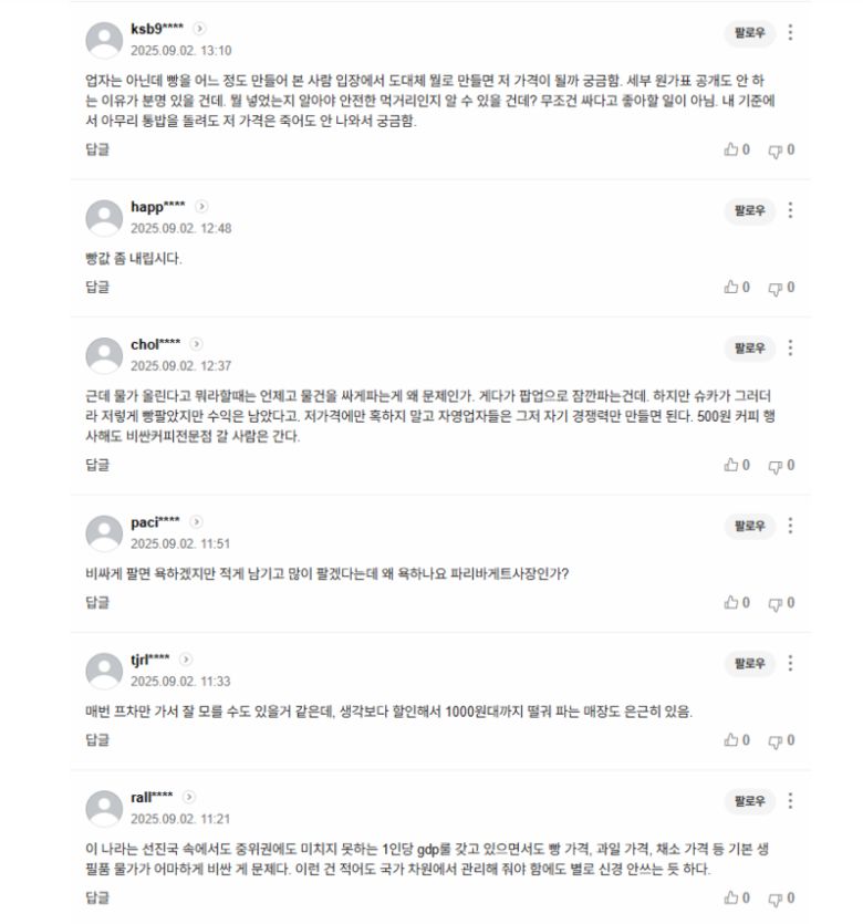 | 990원 소금빵 논란 기사 관련 댓글 / 사진=캡처 |