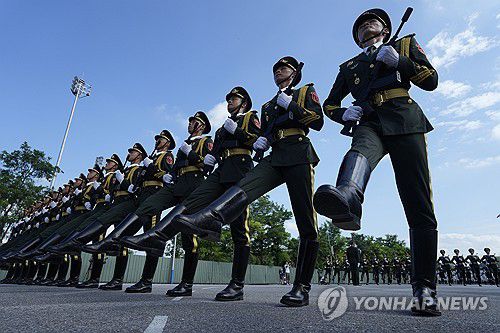항일전쟁 승전 80주년 기념 열병식 연습하는 中군인들 |