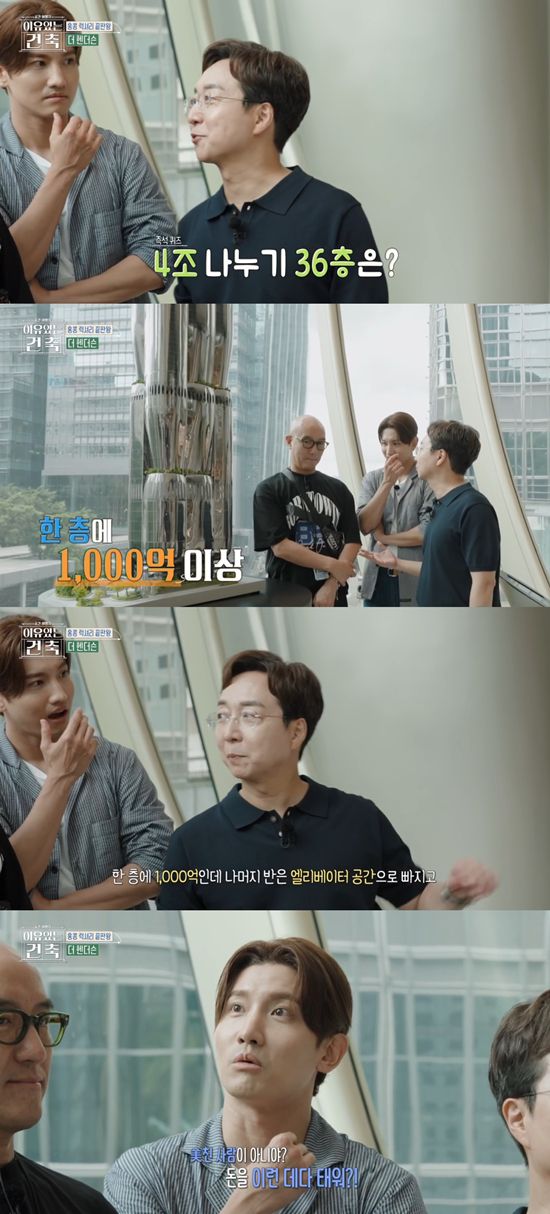 또 유현준은 "엘리베이터 때문에 실제로 사용하는 공간은 절반 정도다. 4조 나누기 36층은 얼마냐. 한 층에 1,000억 정도 되는 거다"라고 설명했다. 이에 최강창민은 "미친 사람 아니냐. 돈을 이런 데다 이렇게 태우냐"라며 경악을 금치 못했다.