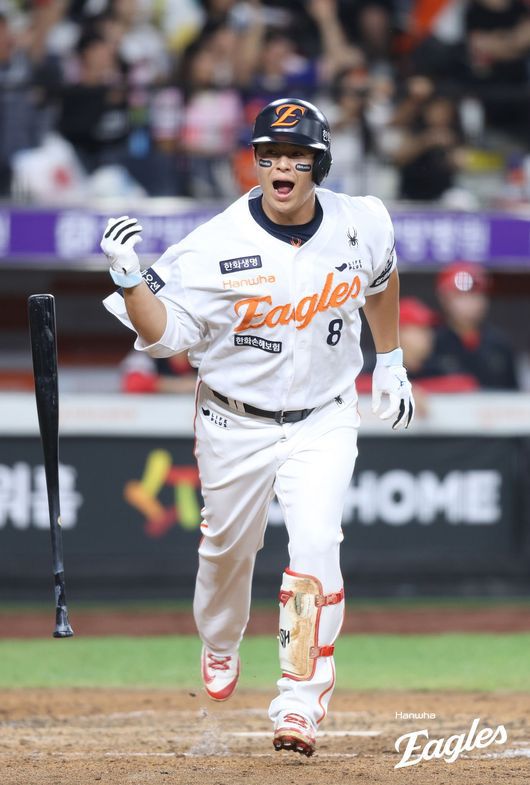 노시환은 “진짜 넘어갈 줄 몰랐다. 2루타 정도로 생각하고 열심히 뛰었는데 넘어가서 의아했던 홈런이었다. 기분이 더 좋았다”며 웃었다. 노시환의 1경기 2홈런은 지난 4월16일 문학 SSG전, 지난달 16일 창원 NC전 이어 시즌 3번째.