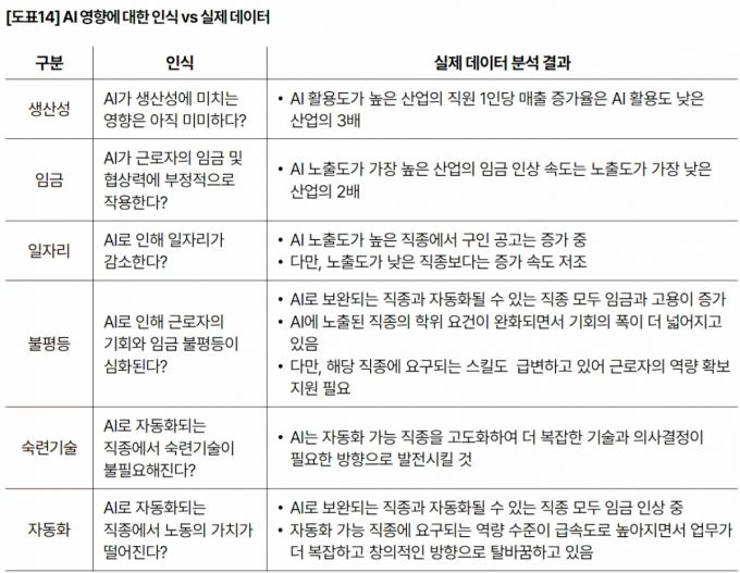 보고서는 "AI가 복잡한 문제 해결을 보조함으로써 생산성 향상과 산업 성장을 유도하고 신규 노동수요를 창출할 수 있다"며 "AI가 업무 조력자가 되면서 인간은 더 많은 부가가치 창출 요소에 집중하게 된다"고 분석했다.