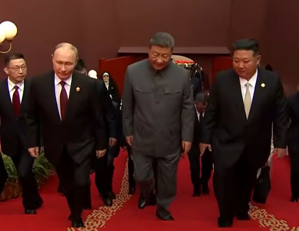 [속보] 좌 정은, 우 푸틴···시진핑과 나란히 걸어서 망루 이동