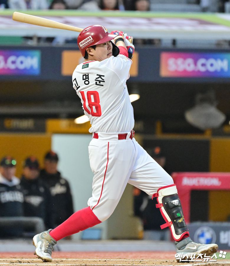 고명준은 1회말 2사 1, 2루에서 키움 선발 C.C 메르세데스를 상대로 헛스윙 삼진으로 돌아섰다. 하지만 다음 타석에서 아쉬움을 만회했다. 두 팀이 1-1로 팽팽하게 맞선 4회말 선두타자로 나와 메르세데스의 초구 140km/h 직구를 통타, 좌중간 담장을 넘기는 솔로 아치를 그렸다.