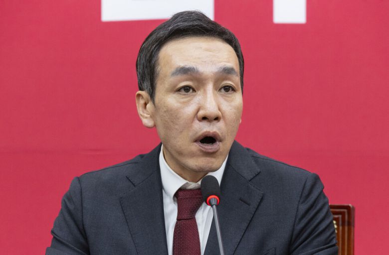 김민수 국민의힘 최고위원이 3일 국회에서 열린 긴급 최고위원회 회의에서 발언하고 있다. 연합뉴스 |