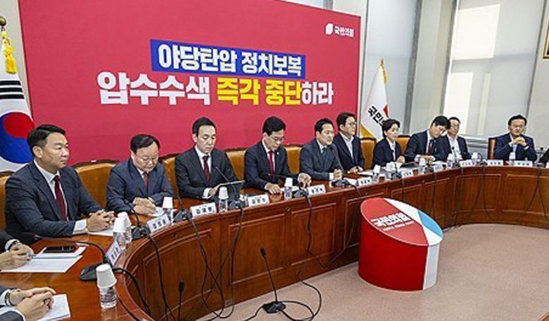 국민의힘은 어제 조은석 특검팀이 사무처 당직자들에 대한 압수수색을 하면서 압수수색 영장을 제시하지 않았고, 변호인이 참여한 가운데 압수수색에 응하겠다는 요구를 거절하고 강압적으로 휴대전화를 압수했다고 주장하고 있습니다.