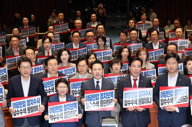 송언석 국민의힘 원내대표는 이날 오전 국회에서 진행된 특검의 압수수색 규탄대회에서 “국민의힘 원내대표로서 원내대표실과 원내행정국에 대한 압수수색을 단호히 반대하며, 지금 이 시간부로 압수수색이 무산될 때까지 무기한 농성을 시작하겠다”고 밝혔다.