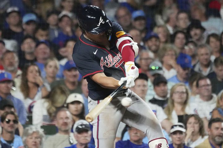 [시카고=AP/뉴시스] 애틀랜타 브레이브스의 김하성이 2일(현지 시간) 미 일리노이주 시카고의 리글리 필드에서 열린 2025 메이저리그 시카고 컵스와 경기 7회 초 우전안타를 치고 있다. 2025.09.03. |