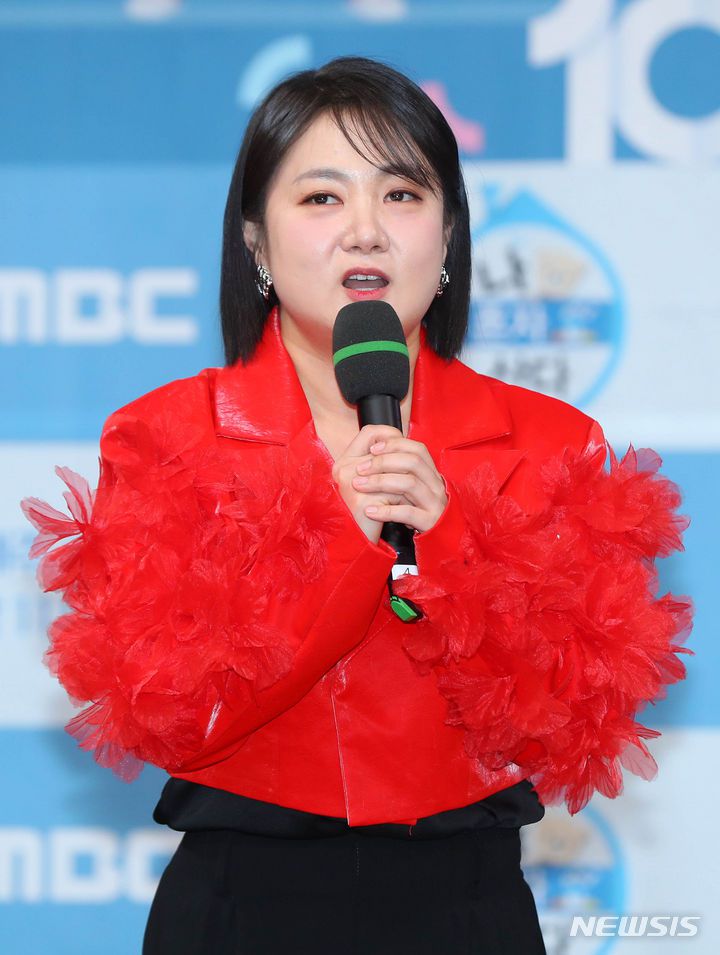 [서울=뉴시스] 김혜진 기자 = 개그우먼 박나래가 4일 오후 서울 마포구 MBC 골든마우스홀에서 열린 MBC '나 혼자 산다' 10주년 기념 기자간담회에서 인사말을 하고 있다. 2023.12.04. jini@newsis.com